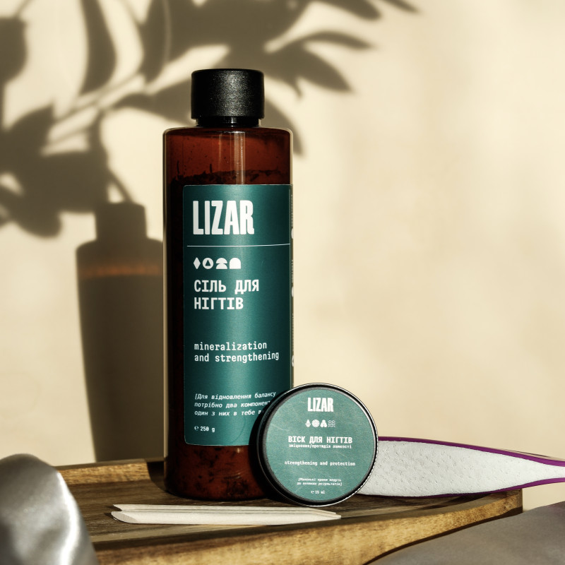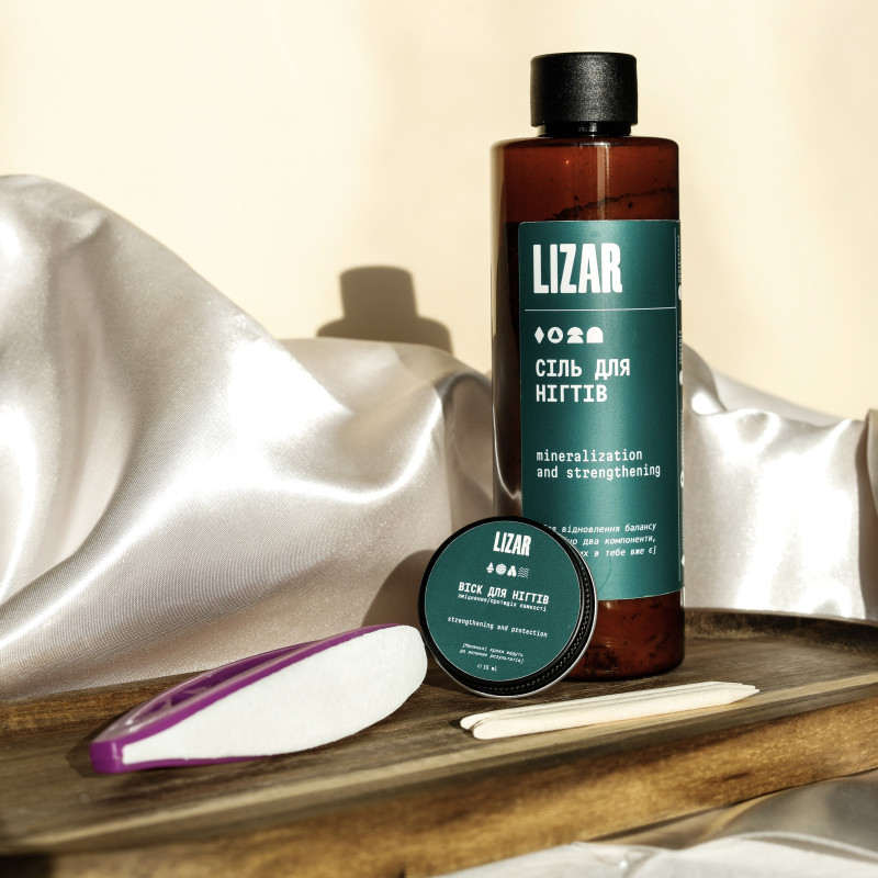 Знявши з нігтів шелак, я зрозуміла, що моїм нігтикам треба термінова допомога. Вони були в жахливому стані. Ламались, розшаровувались. Біда, одним словом. Але!!! Якщо шукаєш вихід - то знайдеш! Я знайшла свій порятунок у Лізар. Це ідеальна СПА система для моїх нігтиків. Сіль чудово пахне. І коли я роблю ванночку для моїх нігтиків, то ще й насолоджуюсь ароматом розмарину, лаванди та лимону... А потім наносиш віск... Лізар потурбувався і в комплекті був Баф для поліровки. Бо я навіть про нього не подумала. А як же без нього натерти нігті до блиску, до відчуття гарячого? Ніяк?. Вже після третьої процедури мої нігтики почали оживати. Це мене надихнуло і я провела 10 процедур. Нігтики стало значно кращі. Тепер роблю це раз на тиждень. Ручки доглянуті, нігтики зміцніли, набагато швидше ростуть. Однозначно рекомендую!!! Ваші ручки будуть завжди , як у королеви!